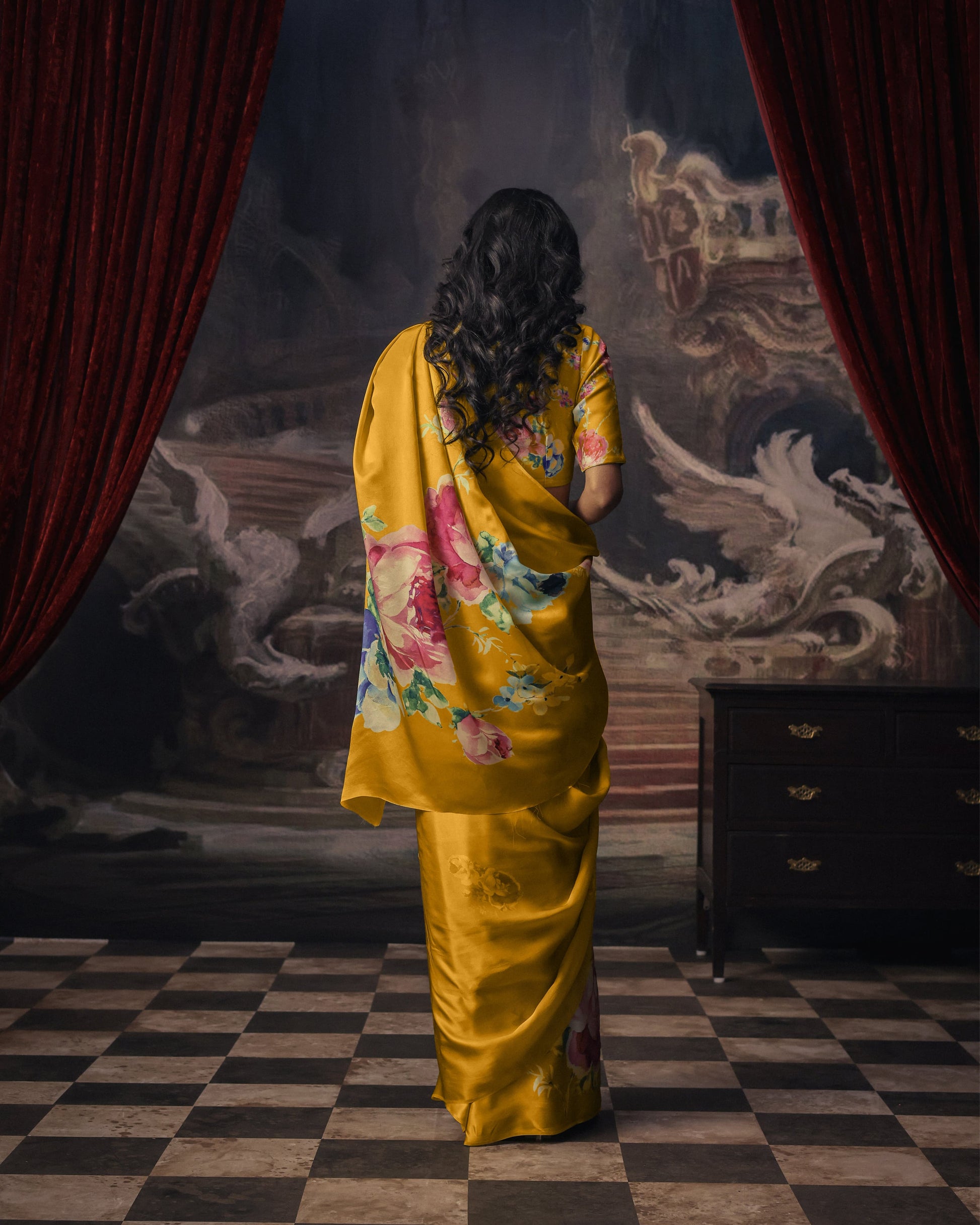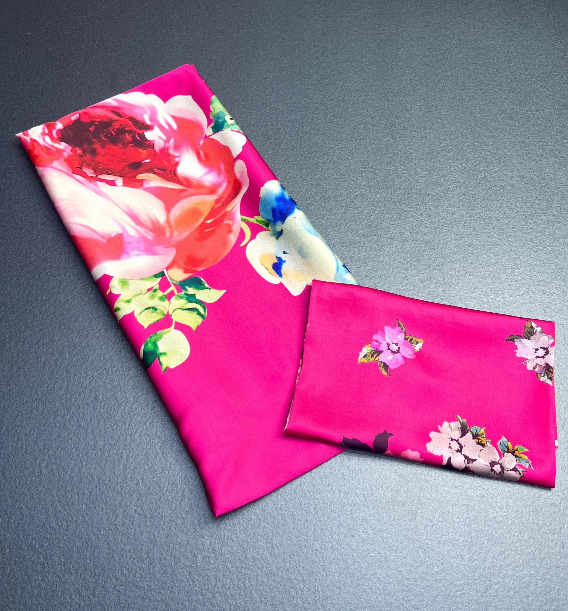 Firozi Floral Digital Printed Original Japan Satin (Devsena satin)